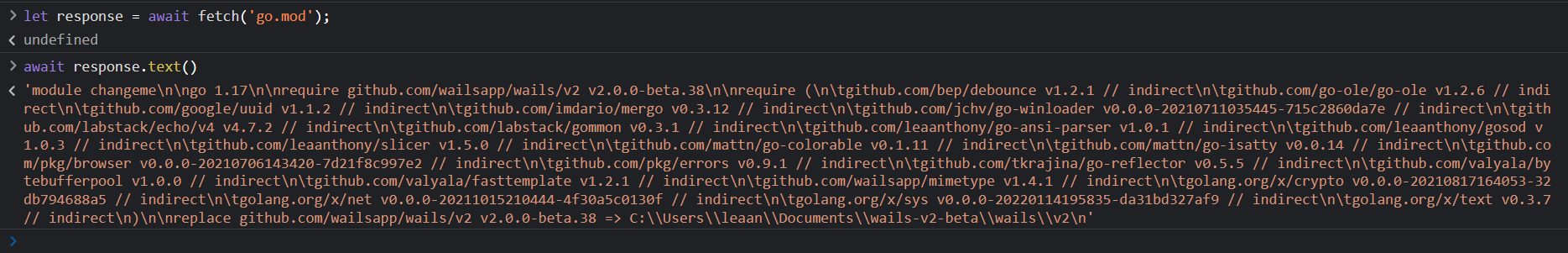 This will generate an error in the devtools. We can see that the error is what we expect, returned by our custom assets handler: